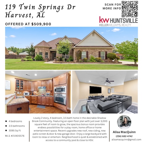 Alisa MacQuinn isn’t just selling homes... she’s shaping the North Alabama story, one relationship at a time. Having lived in Madison since 2003, Alisa's roots run deep... from middle school to motherhood, from military culture to homegrown charm. Her career reflects that same balance of structure and soul.