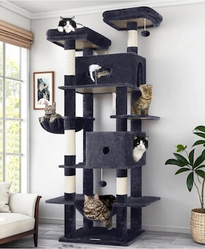 If we kept all of the cat tree houses we've had, we could have created a 3 story cat tree. This one is probably safer and tall enough.